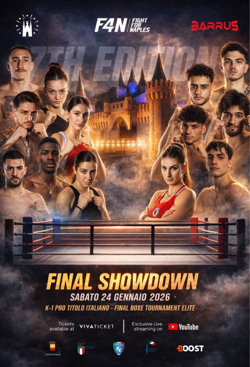 Il clou di questa settima edizione di Fight for Naples sarà in serata  con il match valido per il titolo italiano K-1 Rules WAKO PRO nei 71,8 kg tra M’Hamsi Monsef (Ego Palestre) e Mattia Palumbo De Vivo (Eagles Team) a cui seguirà l’incontro di boxe Elite di Angelo Zaccariello, laureatosi campione italiano a Trieste, opposto a Riccardo Rispoli (Marco Aurelio boxe). A seguire anche l’esordio tra i professionisti di Marco Bevilacqua (pugilistica Cardamone) che  combatterà nei 68 kg con Fabio Cavallucci.